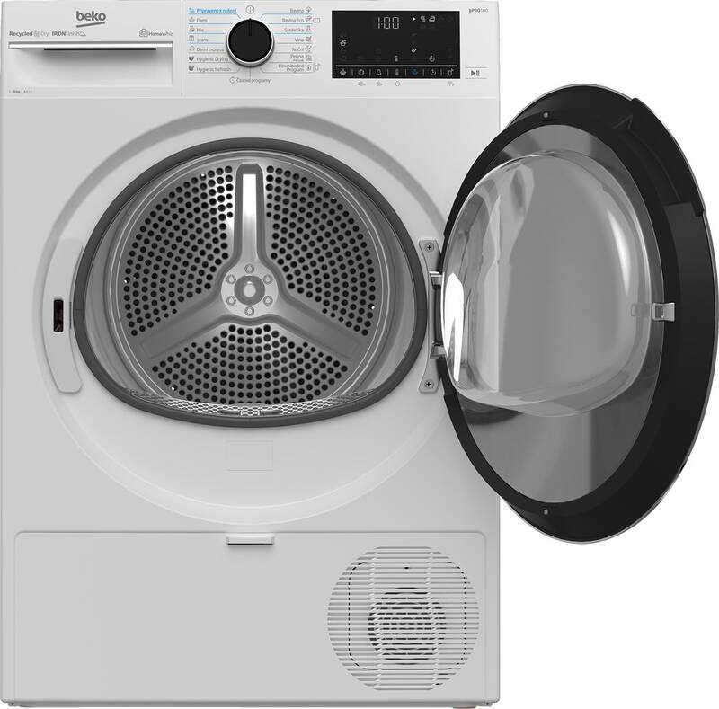 SPECIÁLNÍ FUNKCE:Automatický systém proti zmačkání v sušičce, vnitřní osvětlení bubnu, FreshCaps jsou ideální místo aviváže pro zhebčení a provonění prádla během sušení. Vystačí na 30 cyklů sušení a lze vybírat ze tří vůní – Fresh, Floral a Ocean.