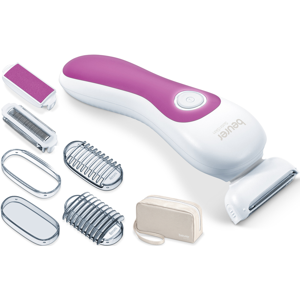 Dámský holicí strojek • Flexibilní hlava • Pomocí nástavců můžete zastřihovat a holit chloupky nebo provádět peeling pokožky • Mokré i suché použití • 2 nastavení rychlosti • LED světlo • o až 60 minut provozu • Nabíjecí a úložná stanice s USB-C kabel