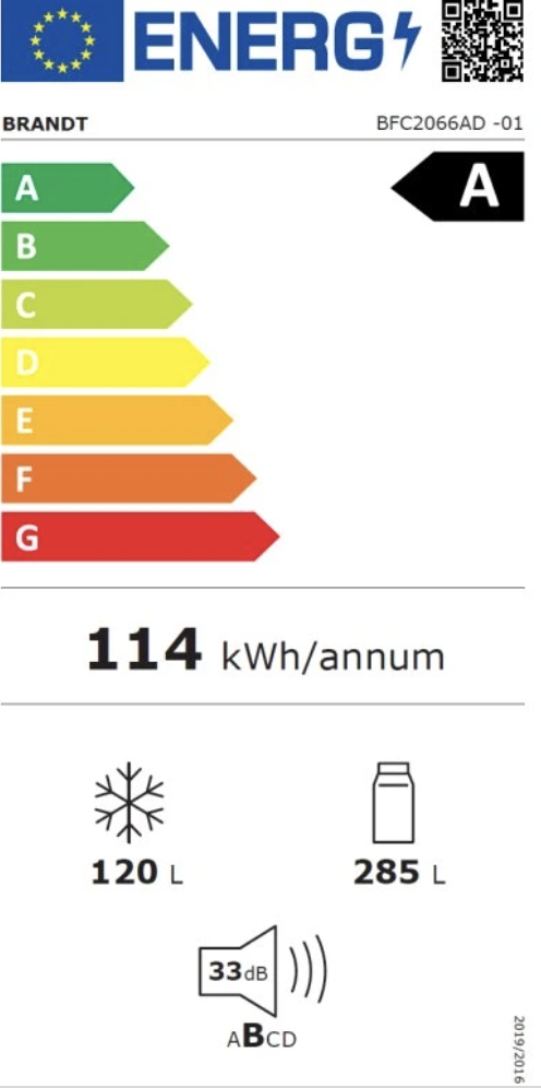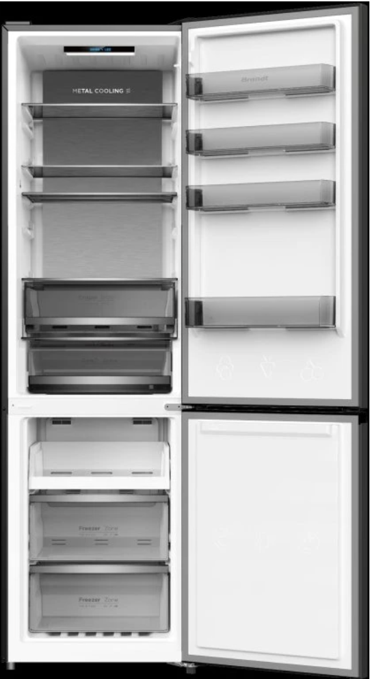 Kombinovaná chladnička s mrazákem dole typu NO FROST • Objem chladnička/mraznička: 285 l/120 l • Funkce: Super chlazení, Super mrazení, ECO, Care+, Dětský zámek • Vnitřní LED osvětlení • Signalizace otevřených dveří • Fresh zóna, 4 police z bezpečnostního skla, 3 přihrádky ve dveřích, 3 objemné šuplíky v mrazáku • Energetická třída A ● Roční spotřeba energie: 114 kWh • Mrazící výkon 5,5 kg/24 h ● Výdrž bez proudu až 18 h • Hlučnost pouze 33 dB • Rozměry (VxŠxH): 200 x 59,9 x 66 cm