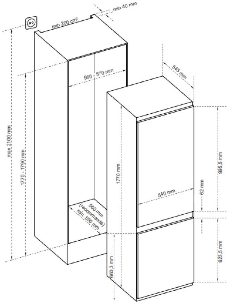 ZPŮSOB UCHYCENÍ DVEŘÍ: kluzné uchycení (nábytkové dveře jsou připevněny na samostatných pantech a jsou spojené s dveřmi ledničky pomocí kluzného mechanismu)