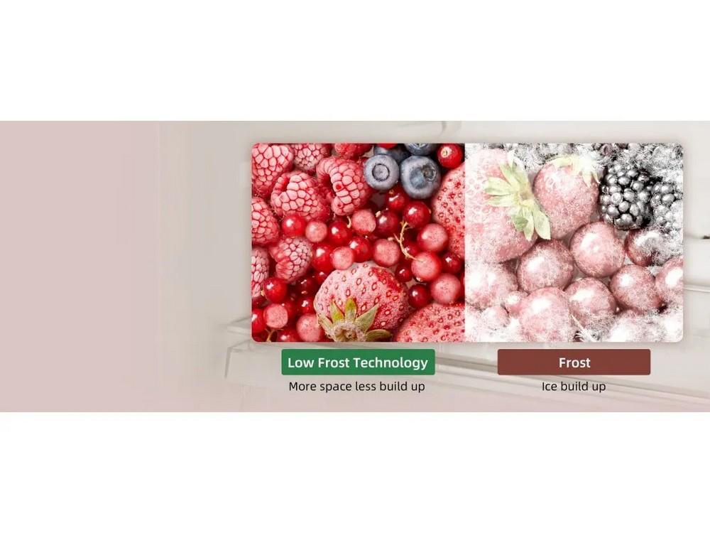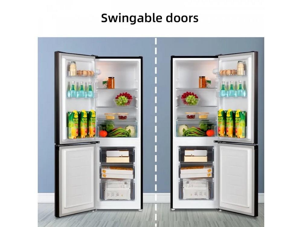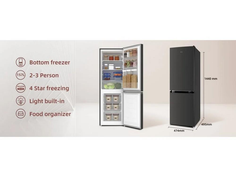 Kombinovaná chladnička • volně stojící • mrazák dole • energetická třída E • hlučnost 39 db • objem 157 l • No Frost • mrazák • Total No Frost • LowFrost • LED osvětlení • změna otevíraní dveří • výška 144 cm • šířka 47 cm • hloubka 49,2 cm • nerez