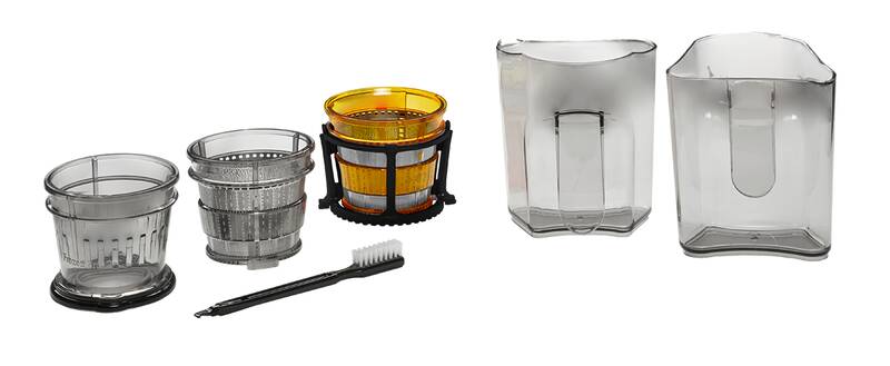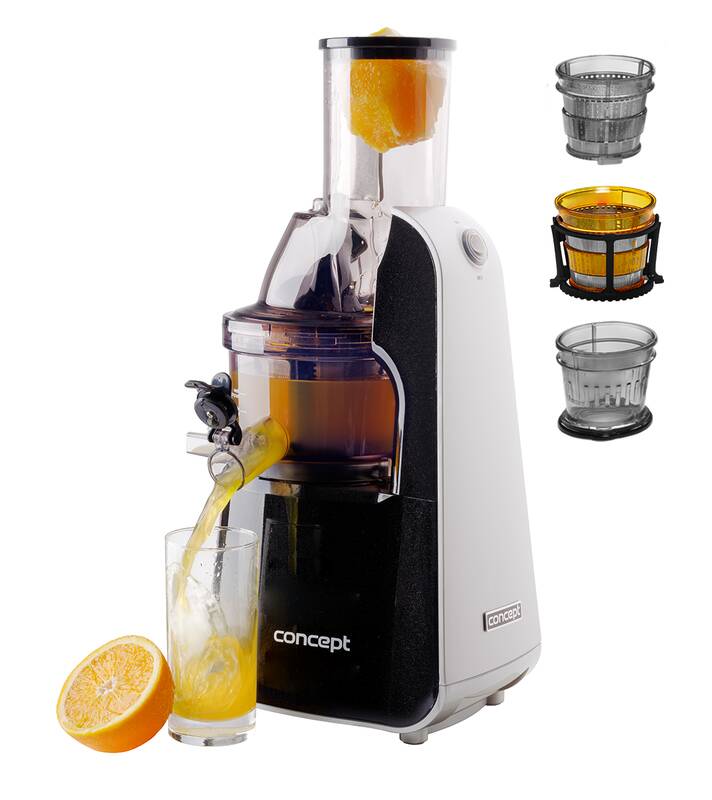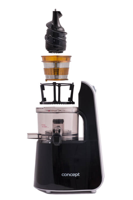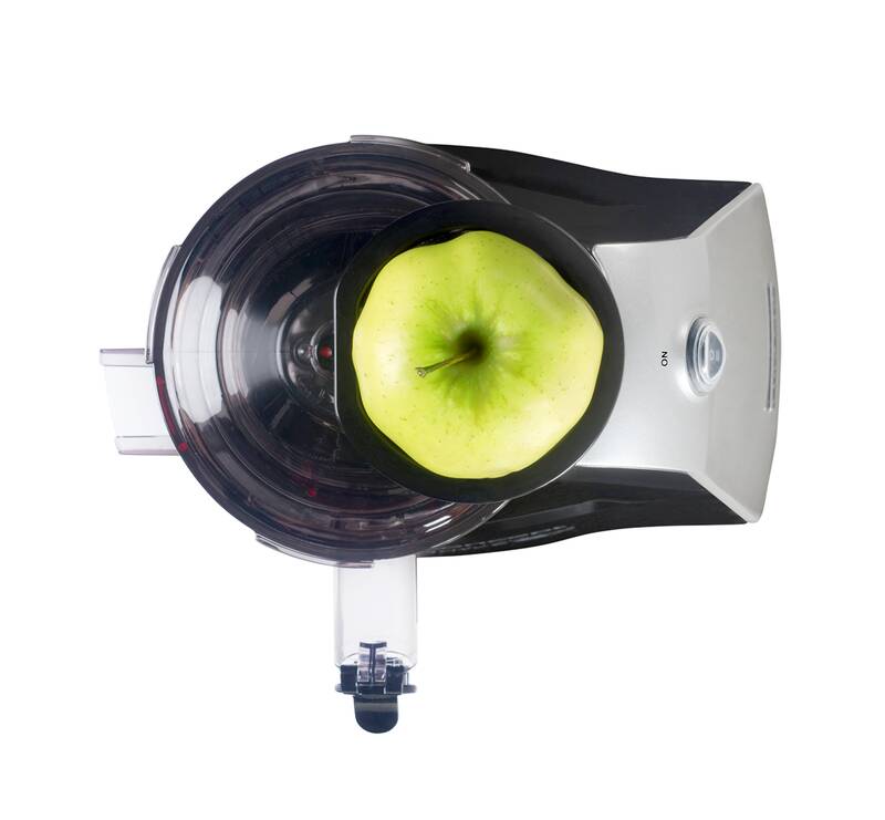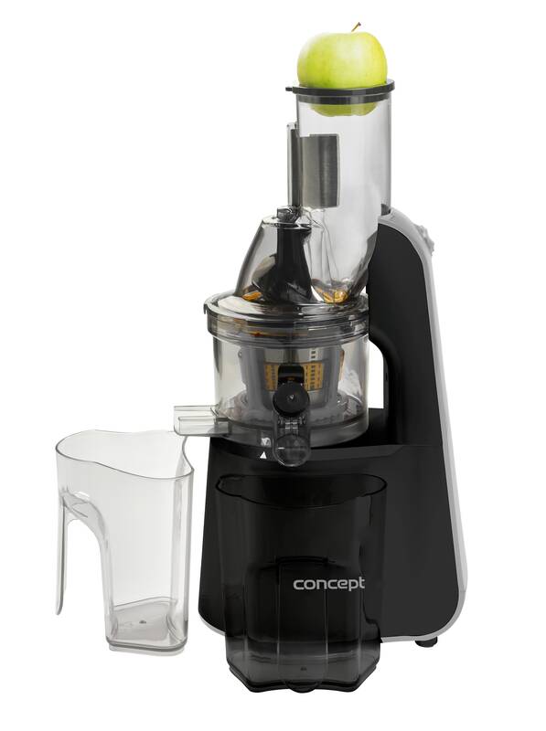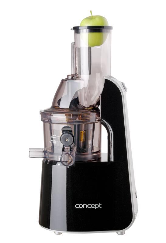 šnekový lis na ovoce a zeleninu • specialista na rybíz • 75 mm velký vkládací otvor • velmi jednoduchá obsluha • snadné čištění díky plné rozebíratelnosti a uzpůsobenému kartáčku • objem nádoby na šťávu: 1 l • objem sběrné nádoby: 1 l • bezpečnostní systém • pěchovadlo • protiskluzové nožičky • rychlost: max. 60 ot./min • příkon: 240 W • barva: nerez + černá • hmotnost: 3 kg