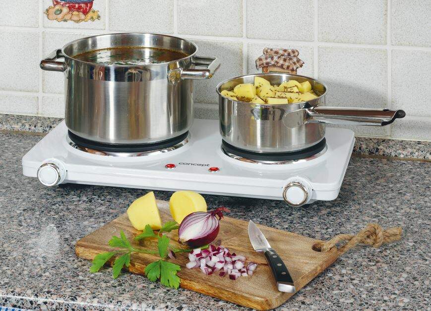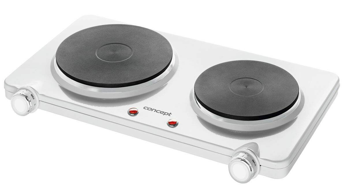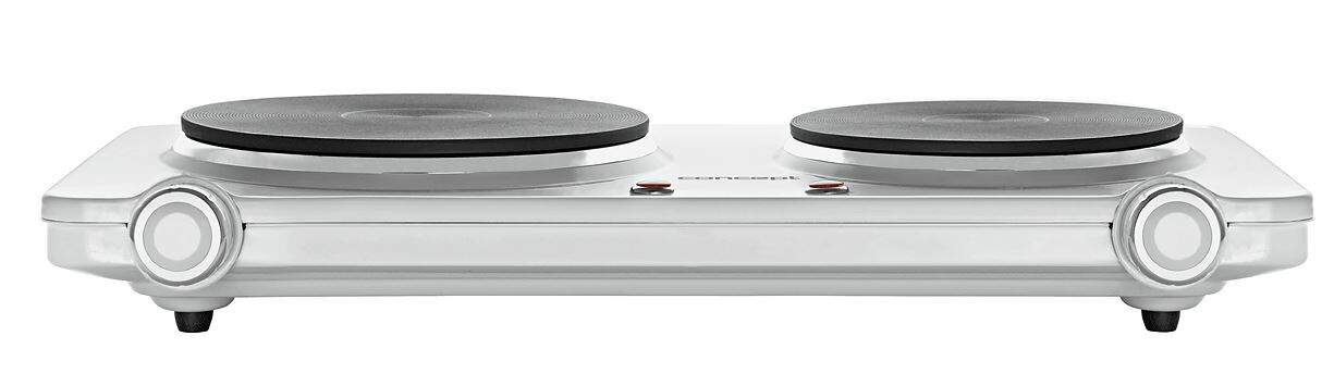 litinové dvouplotýnky o průměru 185 mm a 155 mm • příkon 1500 W• plynulá 5 stupňová regulace výkonu • 2 světelné kontrolky, provozu• termostat • barva bílý smalt