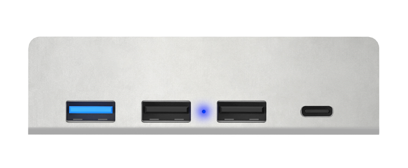 USB hub • připojení přes USB-C / USB-A port (max. 5 V / 3 A) • USB-C port, 2× USB-A 2.0, USB-A 3.2 port • maximální rychlost až 5 Gbps • odolná hliníková konstrukce • kompaktní design, upevnění na desku stolu • kompatibilní s OS Windows, macOS X • Plug & Play • 1m kabel
