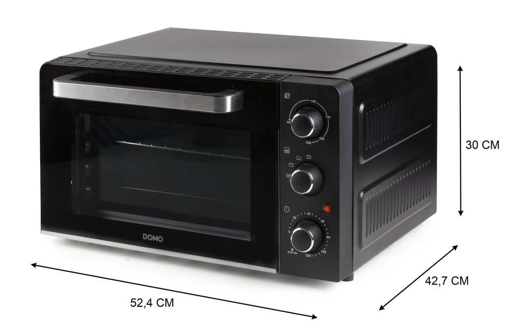 Objem: 28 l • Příkon 1500 W• Jednoduché a přehledné manuální ovládání všech funkcí • Světelná kontrolka zapnutí • Plech, nebo rošt lze umístit do 3 různých výšek • Tepelně izolovaný "Cool Touch" povrch • Dvířka lze otevřít do 4 poloh • Dobře čistitelný hladký vnitřní povrch • Vysoce kvalitní topná tělesa • Rozměry přístroje (š x h x v): 52,4 x 42,7 x 30 cm