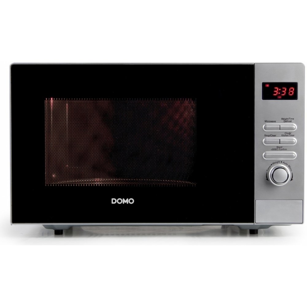 Výkon mikrovln 800 W, objem: 23 l, 5 nastavení výkonu, digitální časovač se signálem, funkce rozmrazování podle hmotnosti, nebo času, bezpečnostní zámek dveří, otočný skleněný talíř 27 cm