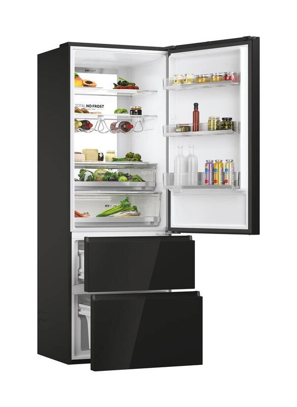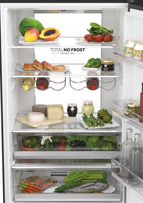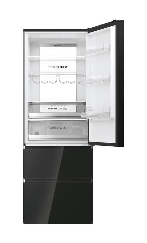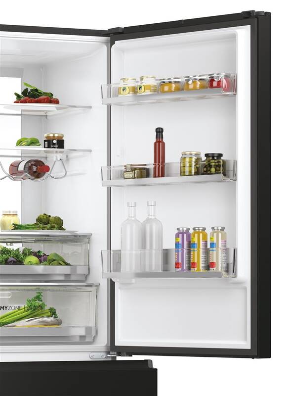 SPECIÁLNÍ FUNKCE CHLADNIČKY:automatické odmrazování (No Frost), Multi-Airflow systém pro rovnoměrnou distribuci chladu, zásuvka My Zone Plus s nastavitelnou teplotou, zásuvka Humidity Zone s HCS technologií pro udržení až 90 % vlhkosti, alarm otevřených dveří, LED osvětlení Daylight, Wi-Fi připojení s podporou aplikace hOn