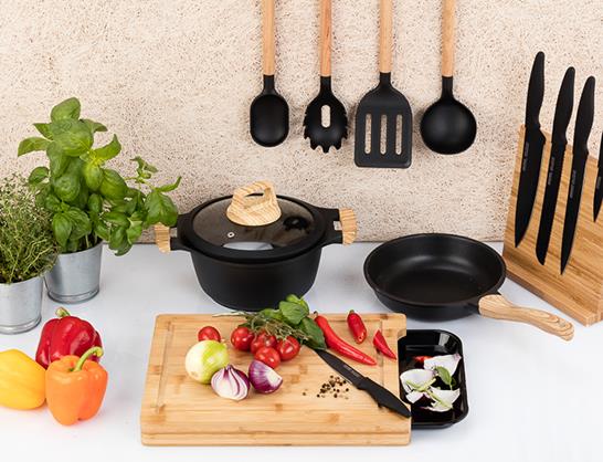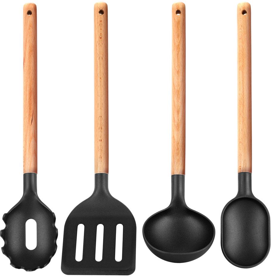 Vyrobeno z bukového dřeva a nylonu odolného teplotám až 210°C • Obracečka • Velká lžíce • Naběračka • Naběračka na špagety
