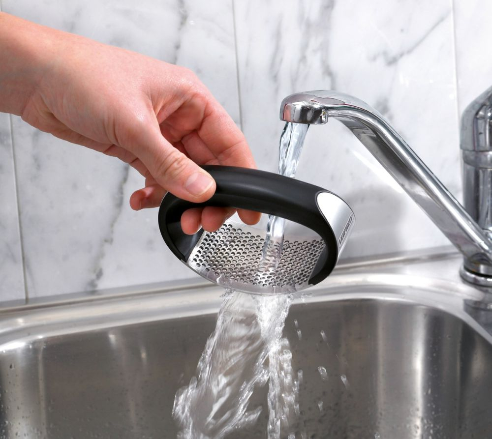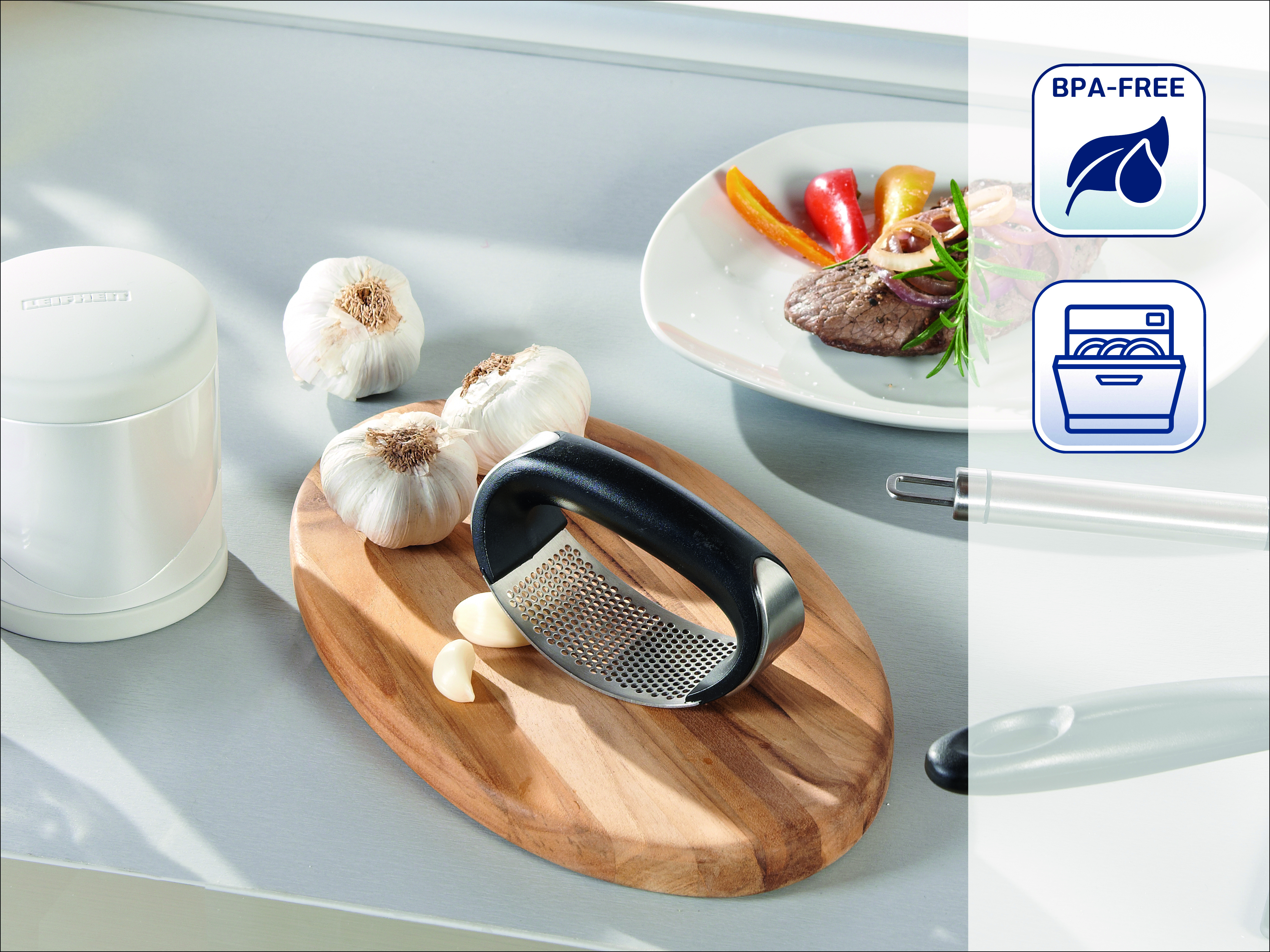 Lis na česnek Proline značky Leifheit • moderní lis na česnek • inovace v lisovaní česněku • díky ostrým hranám děr lisu se česnek nařeže a nerozdrtí, čímž se zachová jeho chuť a aroma • moderní design dotávří kombinaci nerez ocele s vysoce kvalitním plastem • snadná údržba • vhodný do myčky nádobí • záruka 5 let • rozměry: 5 x 18 x 14 cm • materiál: plast/ ušlechtilá ocel • barva: stříbrná/ černá