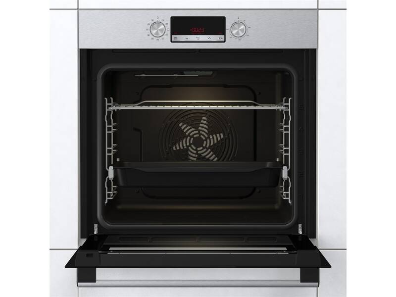 vestavná trouba • energetická třída A • objem 77 l • horkovzdušná trouba • teleskopické výsuvy • displej • ECO clean čištění • funkce Horký vzduch – zajistí perfektní distribuci tepla do všech úrovní trouby • program Pomalé pečení – díky jemnému a pomalému pečení bude maso vždy křehké a šťavnaté • program Pizza – křupavá pizza jako z kamenné pece při 300 °C • funkce Rychlý předehřev – ušetření času s předehříváním na 200 °C za 5 minut • V × Š × H: 59,5 × 59,5 × 56,4 cm