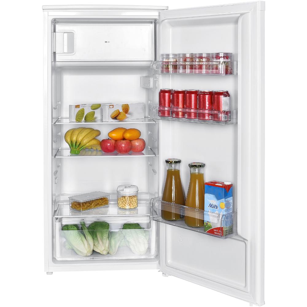 Jednodveřová chladnička • Energetická třída E • Celkový objem 190 L • Čistý objem chladničky/mrazničky 176/14 l • Roční en. spotřeba 143 kWh • Hlučnost 39 dB • Klimatická třída N/ST • Mrazící výkon 2 kg/24h • Max. skladovací doba při výpadku proudu 9 h • Výška: 123,5 cm • Šířka: 55 cm • Hloubka: 57 cm