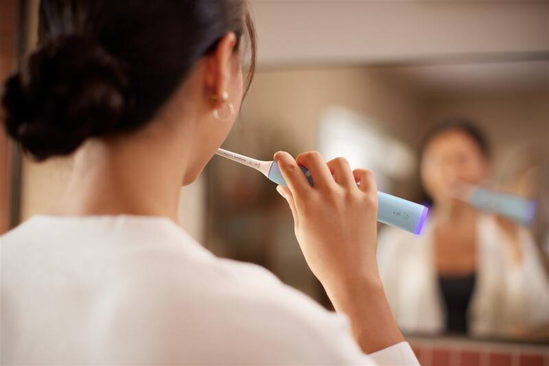 zubní kartáček • sonická technologie • 3 stupně intenzity • 2 režimy čištění • tlakový senzor • SmarTimer zastaví čištění po 2 min. • funkce BrushPacer zajistí rovnoměrné čištění • indikátor stavu baterie • technologie BrushSync pro výměnu hlavice • hlavice Sensitive • nabíjecí základna