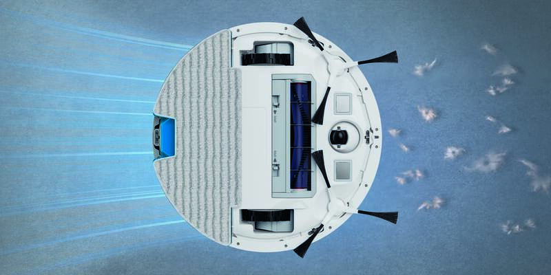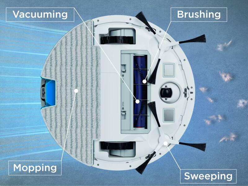 robotický vysavač s mopem • 4 v 1 • objem nádoby 0,5 l • provoz na baterii Li–Ion • hlučnost 60 dB • virtuální zeď v mobilní aplikaci • doba provozu 120 min. • pro tvrdé podlahy i koberce • funkce plánování úklidu • rozpoznávání překážky • laserová navigace LiDAR • kamera • podpora hlasových asistentů • umělá inteligence • HEPA filtr