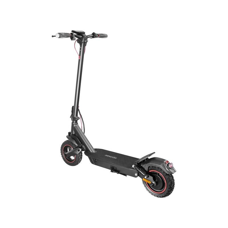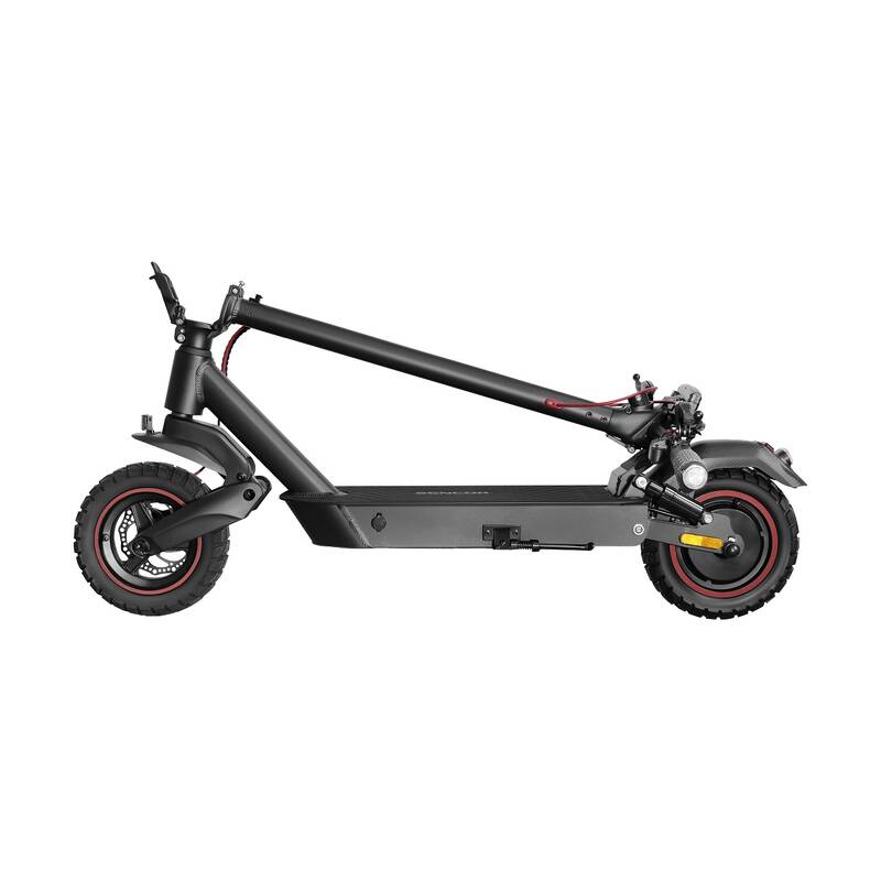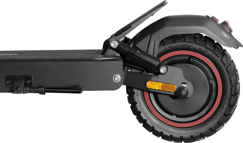 elektrická koloběžka • výkon motoru 500 W • max. dojezd 45 km • max. rychlost 25 km/h • 10" bezdušová kola • baterie 12,5 Ah / 48 V • doba nabíjení cca 7 h • tempomat • zadní/přední odpružení • LED osvětlení • nosnost 120 kg • hmotnost 22 kg • skládací konstrukce • propojení s mobilním telefonem