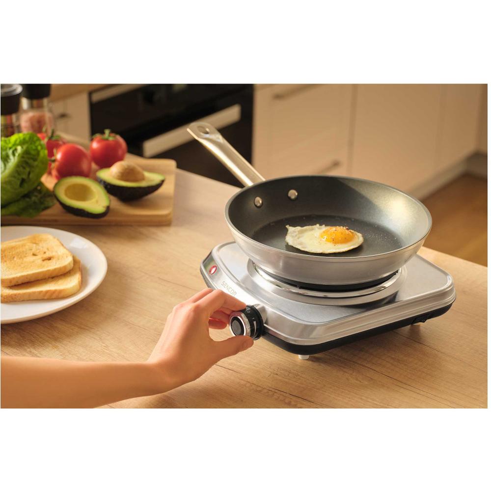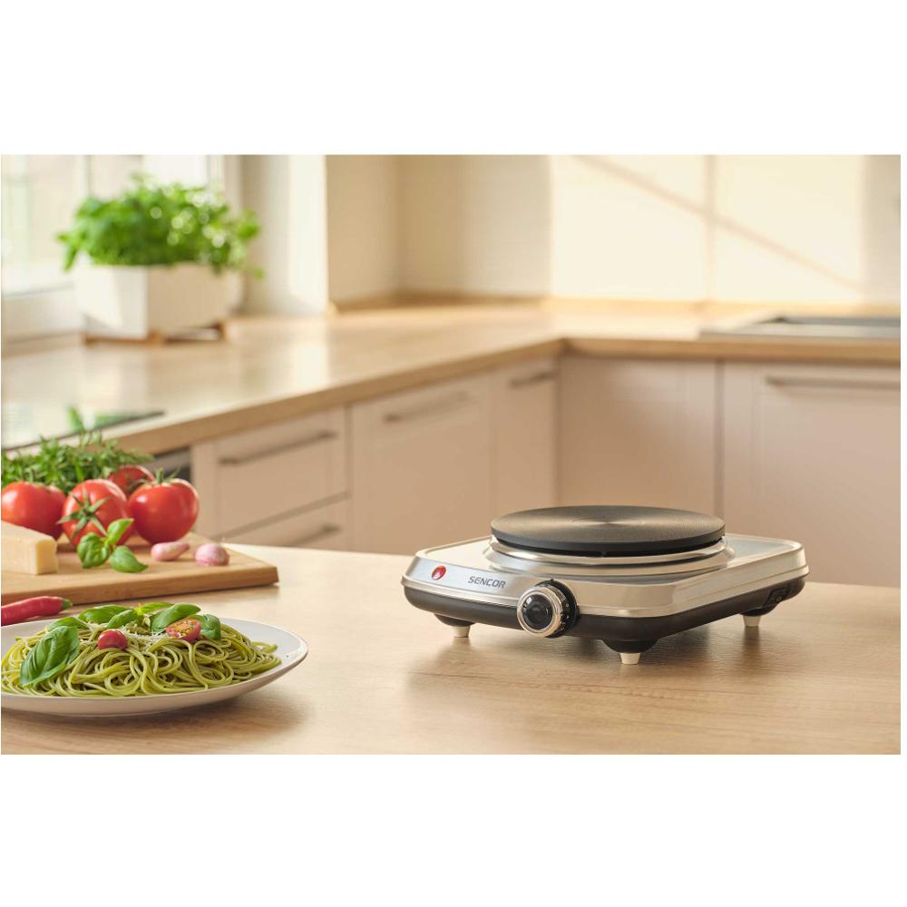 Vařič elektrický • Varná deska o průměru 18 cm • Povrch z nerezové oceli • Plynule regulovatelný termostat pro nastavení požadované teploty • Jednoduché ovládání a čištění Ochrana proti přehřátí • Snadno přenositelný • Světelný indikátor provozu • Protiskluzové nožičky • Vypínač ON/OFF • Maximální příkon: 1 500 W
