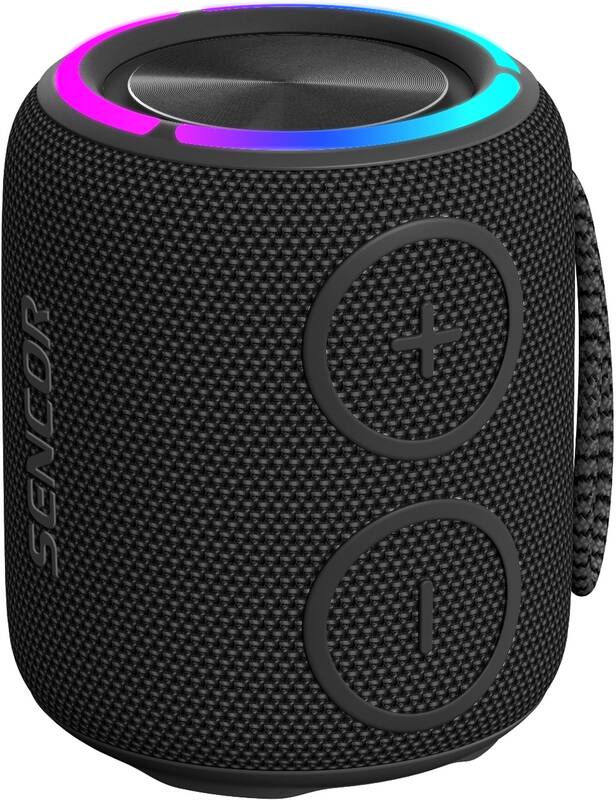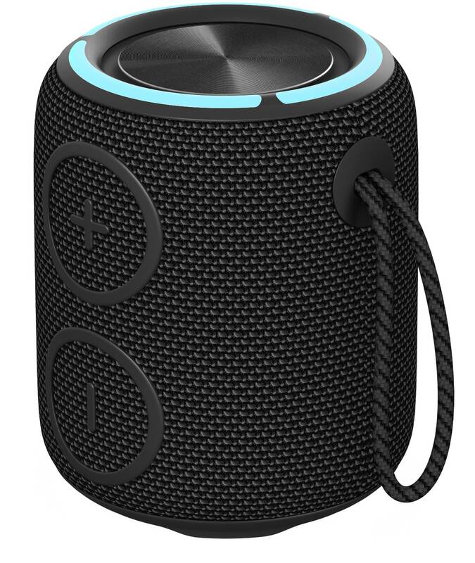 Bezdrátový reproduktor • kompaktní velikost • voděodolný IPX7 • výkon 16 W • funkce True Wireless Stereo • LED osvětlení • kryt z prémiové tkaniny • Bluetooth 5.0, AUX, slot pro TF kartu • 2 500mAh Li-Ion baterie • výdrž až 6 hodin • nabíjení USB-C