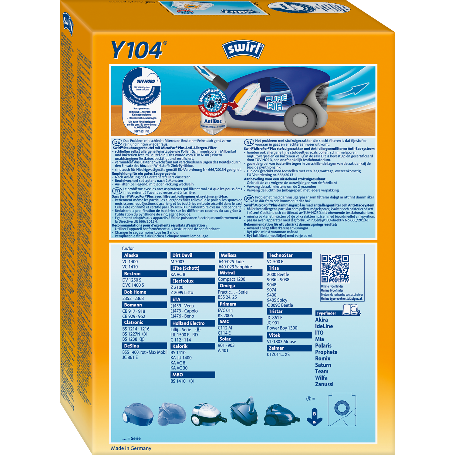 Každé balení sáčků do vysavačů Swirl® obsahuje praktický štítek s označením typu, který si můžete vystřihnout a dát do tašky nebo peněženky. Díky tomu může být hledání správného sáčku Swirl® při vašem dalším nákupu velmi snadné.