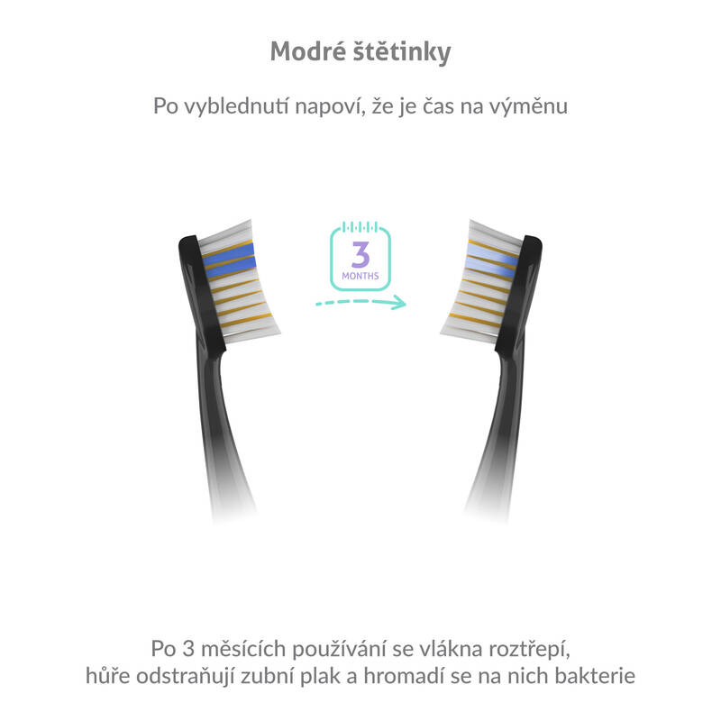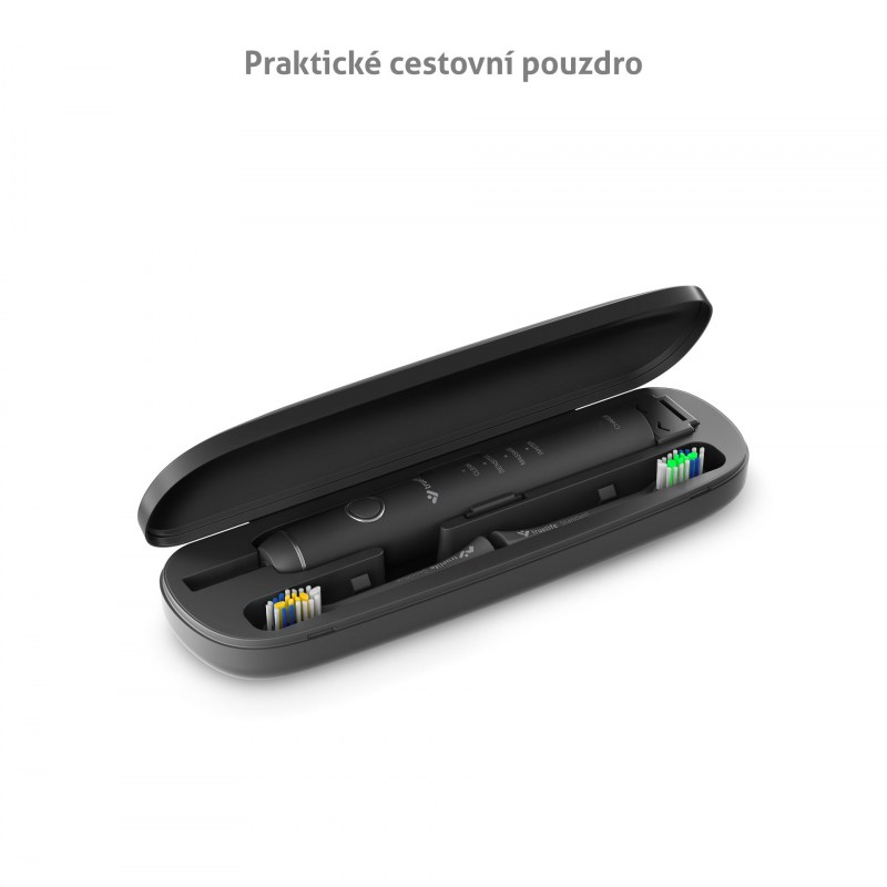 sonický zubní kartáček • 70 000 pohybů/min. • 4 režimy čištění – Clean, Sensitive, Whiten, Massage • 2minutový časovač • funkce paměť • výdrž baterie až 30 dní • cestovní pouzdro • dobíjecí stanice • 3 náhradní hlavice: Standard, Sensitive, Whiten