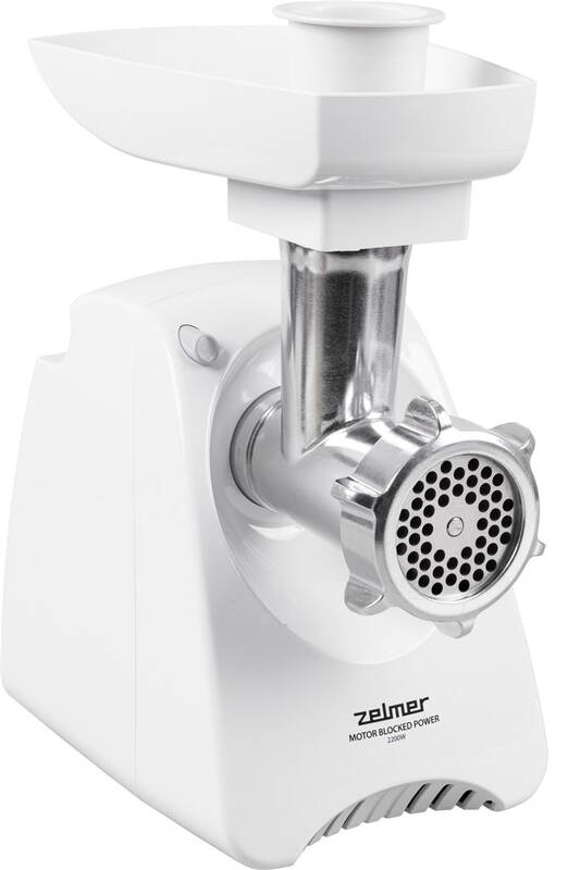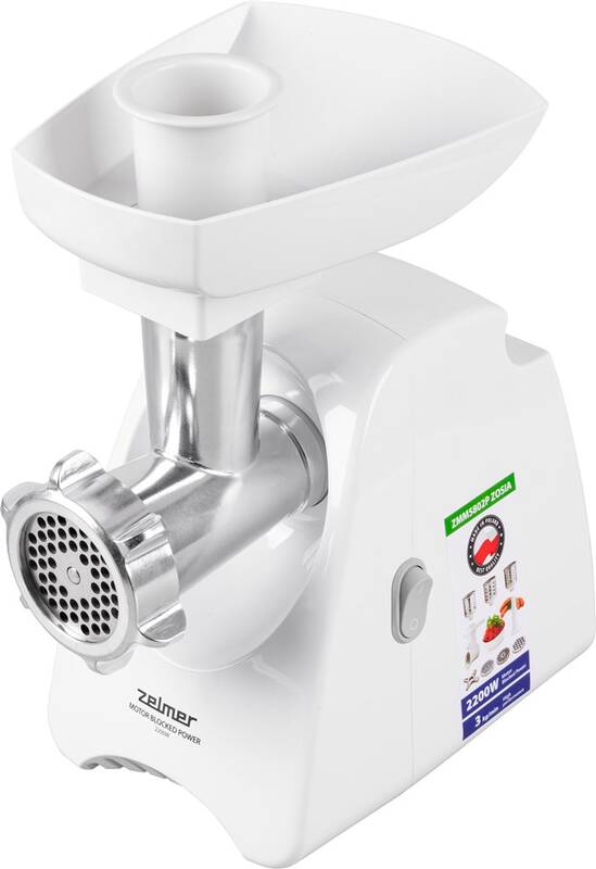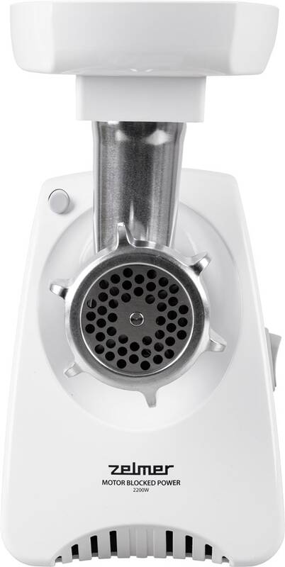 mlýnek na maso • výkon 2 200 W • oboustranná čepel • 3 kg/min • 3 adaptéry na mletí • adaptér na klobásy • nástavec na strouhání